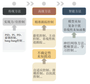 图 3 单至多气动肌肉驱动机器人控制策略发展趋势 |