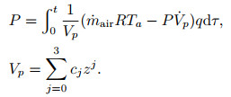 其中: Vp为气动肌肉的体积; mair(t)为肌肉中空气质量; R、q分别为通用气体常数与多方指数; Ta为肌肉中气体的温度; cj为多项式系数.