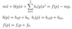 其中: Mp为气动肌肉悬挂的负载质量; yp(t)为负载的位移; Dp、Sp、Fe分别为阻尼系数、弹簧系数以及收缩力元件的有效力; g为重力常数.