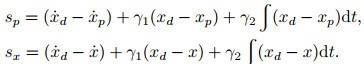 此外, 滑模控制方法因其响应速度快、物理实现简单、对参数摄动和外界干扰具有鲁棒性等优点, 也常用于单气动肌肉驱动机器人的运动控制中.例如, Slightam等[53]针对单根气动肌肉系统建立了一种考虑动摩擦的非线性集总参数状态空间方程, 无需反馈线性化和模型观测, 并设计如下的高阶积分滑模面:
