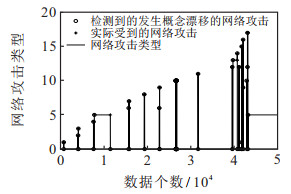 由检测结果可知, 基于HI-DD算法的概念漂移检测方法可以检测到不同类型的网络攻击, 因此可以很好地根据数据分布的变化找到概念漂移发生的位置, 说明基于HI-DD的概念漂移检测方法可行有效.
