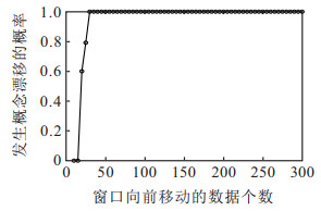 由以上结果可知, 窗口向前移动的数据个数越多, 其概念漂移的检测越灵敏, 与之前的理论分析一致. 当窗口每次向前移动的数据个数为20 ~ 30时, 概念漂移检测的灵敏度适中, 因此本次实验中将窗口移动的数据长度定为25.
