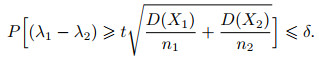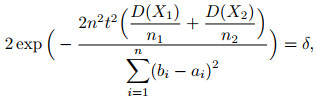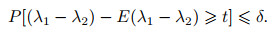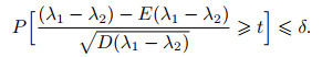根据上述所作的零假设, 两个窗口的数据分布相同且没有发生概念漂移, 为判断S1窗口与S2窗口是否有显著性差异, 构造检验统计量λ1-λ2, 设置信度为δ, 则有