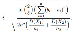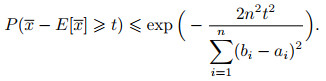 设X1, X2, X3是取值范围在[ai, bi]上的n个独立的随机变量, 可得到一般的Hoeffding不等式