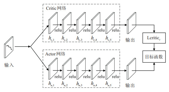 预测模型网络结构如图 3所示, 模型的Actor网络和Critic网络分别包含有一个输入层, 一个输出层, ha, 1, ha, 2, …, ha, 5分别为Actor网络的隐含层, hc, 1, hc, 2, …, hc, 5是Critic网络的隐含层, 各个隐含层使用relu函数作为激活函数.