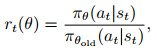 πθ(at|st)是更新后的新策略, 相应地πθold(at|st)为旧策略, at、st分别为t时刻的动作和状态值.