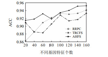 由图 6可以看出, 通过AHFS算法选择的基因子集, 判断出病症类型的准确率高于对比的选择模型.因此, 在白血病等疾病的基因组学中, 本文提出的算法可以较好地利用患者的患病信息获得相关性强的基因子集, 可以有效地判断患病的类型.