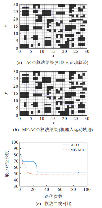 为验证MF-ACO算法在实际问题上的有效性, 将算法应用于机器人路径规划问题[12]进行求解.