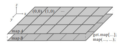 1 双分辨率2.5D栅格地图建模结合2D栅格地图与3D栅格地图的优缺点, 本文提出一种2.5D的建图方案, 称为Multilevel Map, 其是由多层栅格地图组成的一种复合型地图. 如图 1所示, map