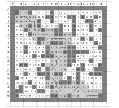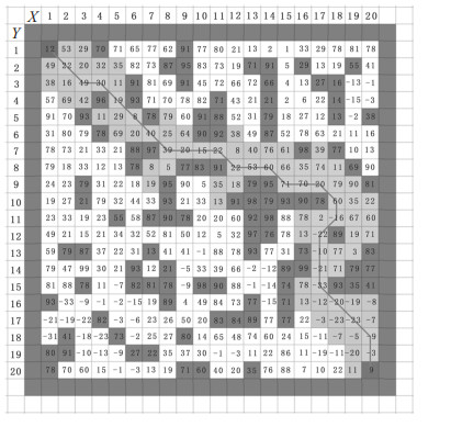 高度信息层中的每个节点存储地图的高程信息, 每一个节点中的高程值代表着一个范围(根据分辨率设定)内的高程平均值. 图 3所示是一张尺寸为