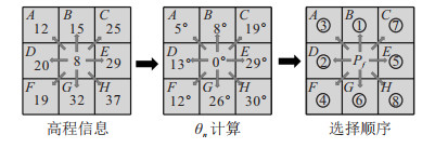 图 7是用算法2对父节点周围节点进行优先级排序的一个简单例子. 为了直观, 截取高度信息层中的3