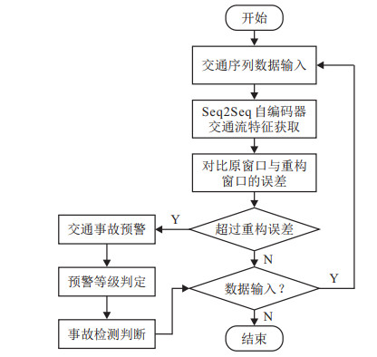 已有文献研究了交通事故与交通状态之间的关系, 分别分析了交通事故发生前后的交通特征. 但是, 现有的数据异常检测算法存在挖掘较多假性异常点以及遗漏较多真实异常点的缺陷, 并不适用于交通事故预警和检测的时序数据. 自编码器具有一般意义上表征学习算法的功能, 应用于维度更改和异常值检测. 自编码器能够有效提取和学习输入数据的内在表征与潜在数据分布, 基于此再重构输入的原始数据. 鉴于此, 本文利用自解码器提取速度和流量的原始列特征, 自动学习正常交通状态下流量和速度间的内在关系, 这样有助于提取重要的交通信息并捕捉交通异常下的波动或其他特性. 建立一套Seq2Seq自编码器深度学习模型, 分别确定不同时空状态下的重构窗口和输入窗口的结构误差, 利用统计学显著性分析分别确定交通事故的判别阈值, 确定事故前后的异常交通状态并实现交通事故的预警和检测.